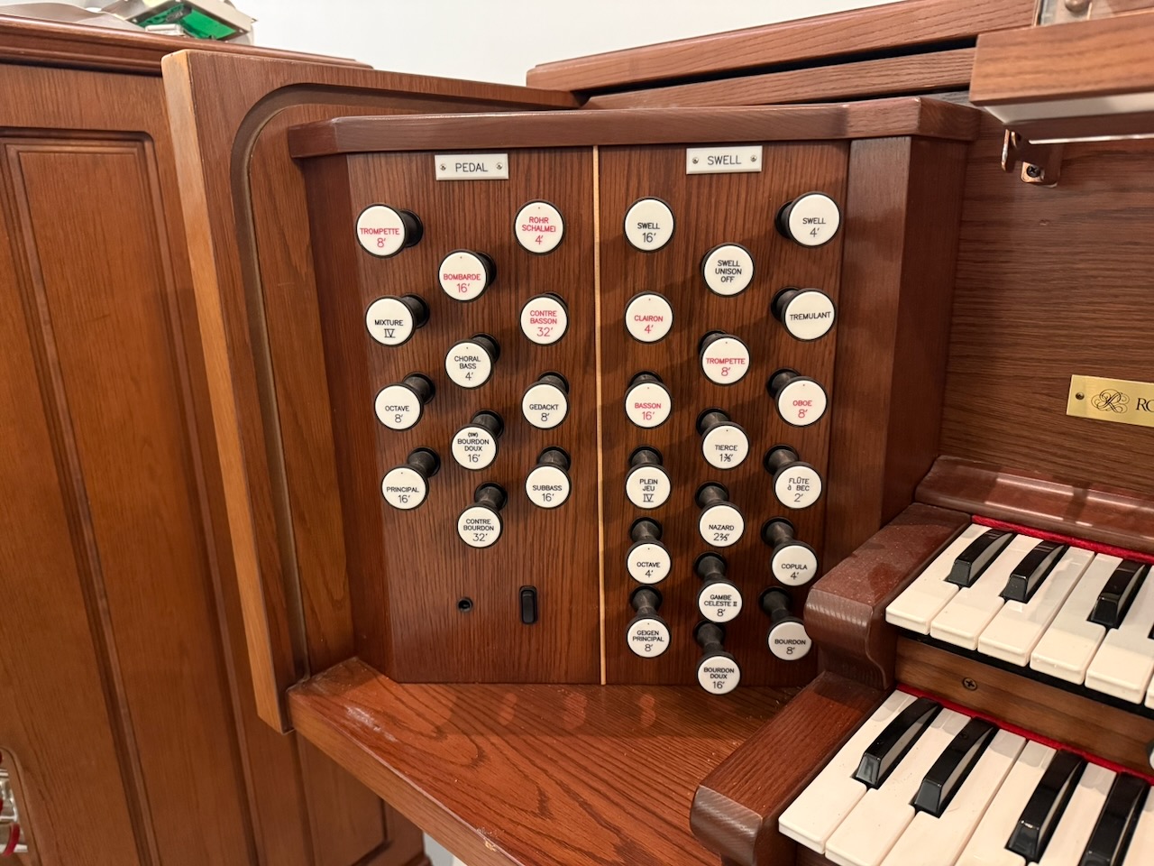 Rodgers 835B digital organ: Lighted Drawknobs (converted to LED), Music Rack and Pedalboard Lights also converted to LED. Includes 6 channel audio system. One year warranty if purchased within our major market area.